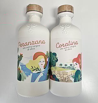Peranzana & Coratina Italian Extra Virgin Olive OilPeranzana and Coratina olive oils are both highly regarded in Italian cuisine, each with unique characteristics: Peranzana Olive Oil: Produced exclusively from the Peranzana cultivar, known for its elegance and balanced flavor. It has a clean bitterness and a peppery finish, making it versatile for raw applications like salads and fish. Coratina Olive Oil: Originating from the Coratina variety, it is characterized by its intense green color, grassy aroma, and strong flavor with hints of artichoke and almond. It is ideal for grilled vegetables and red meat. Both oils are celebrated for their quality and are often used in traditional Apulian recipes, reflecting the rich agricultural heritage of the region.