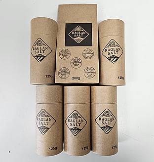 Raglan Sea SaltRaglan Sea Salt is a 100% natural sea salt sourced from the pristine waters of Manu Bay, Raglan, New Zealand. It is made using seawater, sunshine, and minimal additives, ensuring a sustainable and environmentally friendly production process. The salt is available in various flavors, including Plain Natural, Coconut & Lime, Chilli, Kelp and Garlic, among others. Raglan Sea Salt is designed to be a delicious addition to culinary experiences while being free from unnecessary and harmful additives.